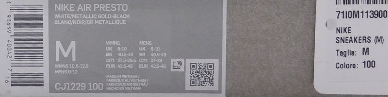 Color: White, Metallic, Gold/Black Sizes: UK; 8-10 EU; 42½-45 Model: CJ1229-100
